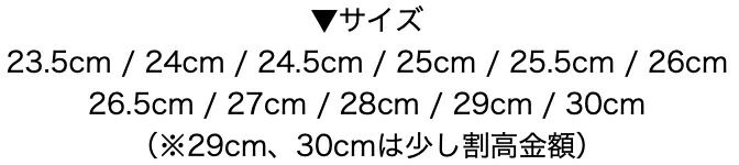 23.5cm/24cm/24.5cm/25cm/25.5cm/26cm 26.5cm/27cm/28cm/29cm/30cm (※29cm、30cmは少し割高金額)