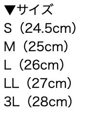 S(24.5cm) M(25cm) L(26cm) LL(27cm) 3L(28cm)
