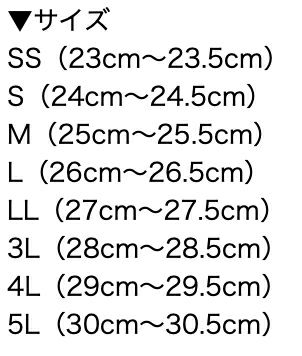 SS(23cm~23.5cm) S(24cm~24.5cm) M(25cm~25.5cm) L(26cm~26.5cm) LL(27cm~27.5cm) 3L(28cm~28.5cm) 4L(29cm~29.5cm) 5L(30cm~30.5cm)