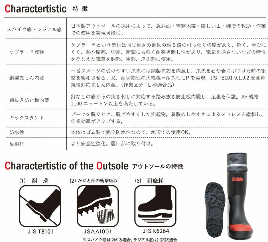 他の画像を見る 25cm~29cm (品番:レンジャーマイティブーツNS)【日本製】スパイク安全長靴(鋼鉄先芯・踏み抜き防止板入り) [DAIDO-25N] DAIDO-25N WEB特別価格 ¥ 45,100 税込 お気に入りに登録する
