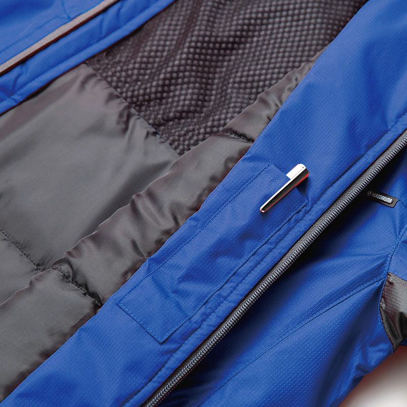 ・防寒性! 高い撥水(はっすい)性あります! ・えり部分もあたたかい。 ・背中あたたかいソーラーセンサー! ・左胸は反射テープ付きポケット ・左内ペン差し ・袖マジックテープ ・ドローコード調整ボタン