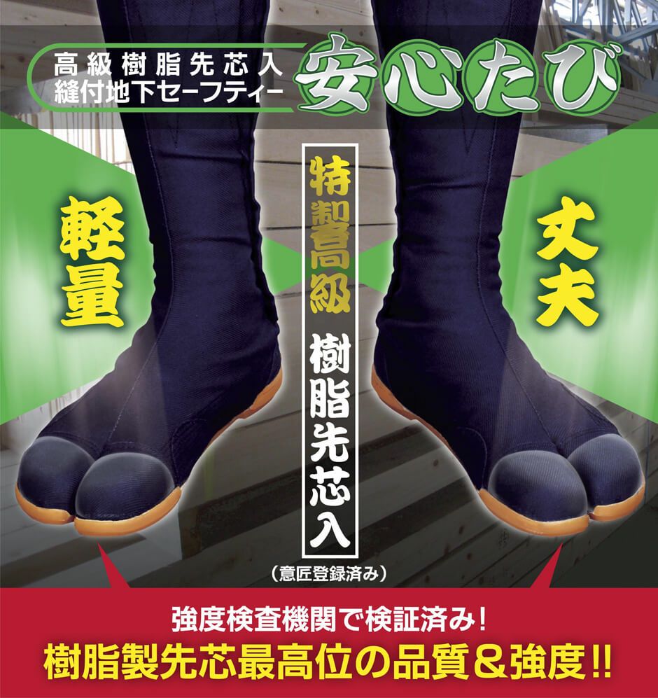 他の画像を見る 24.5cm~28cm 【藍染め】先芯入り安全地下足袋(10枚大はぜ・臭くならない消臭効果・丈夫で頑丈!) [UNW-150-10] UNW-150-10 WEB特別価格 ¥ 5,709 税込 お気に入りに登録する
