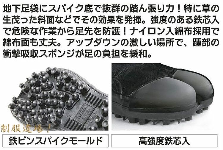 他の画像を見る 23cm~30cm 【甲ガード】スパイク付き安全地下足袋(つま先鉄芯入り・切創事故対策) [SOKAI-I778G] SOKAI-I778G WEB特別価格 ¥ 7,040 税込 お気に入りに登録する