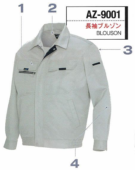 SS~6L(速乾性・帯電防止) 【臭くならない抗菌加工】長袖・作業シャツ(通年物)[AZ-9035]