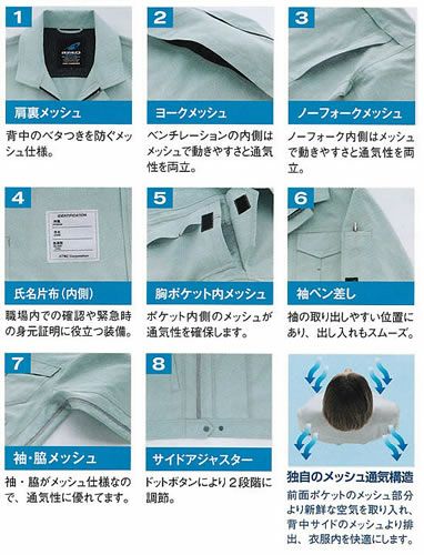 SS~6L(吸汗速乾) 【通気性アップ!】[春夏用]半袖ブルゾン(帯電防止)[AZ-1632]