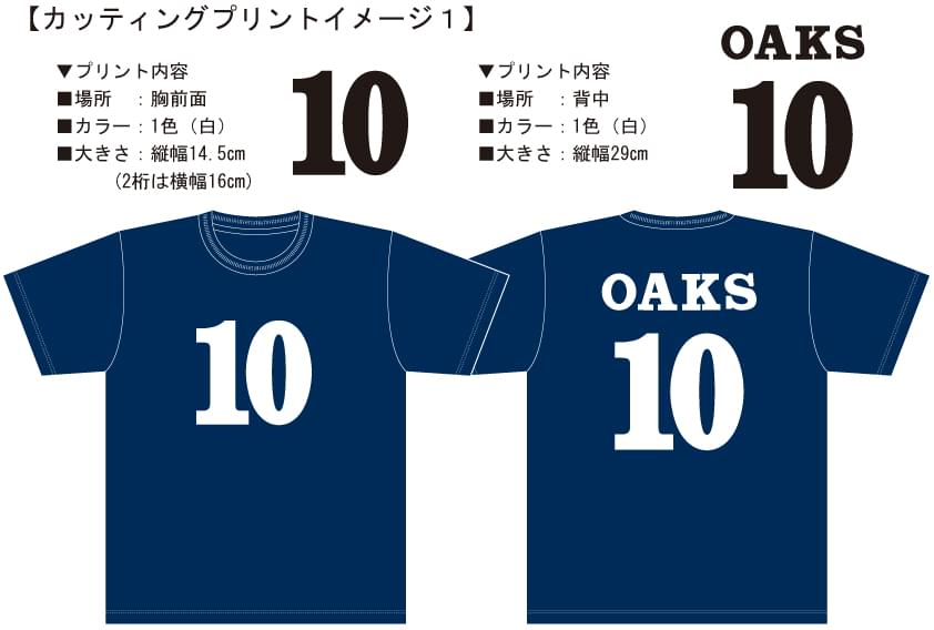 背中の上の文字(個人名やチーム名) 例えばOAKSの文字 |